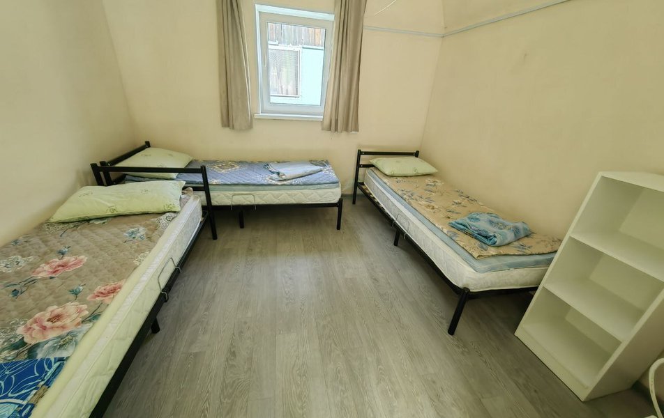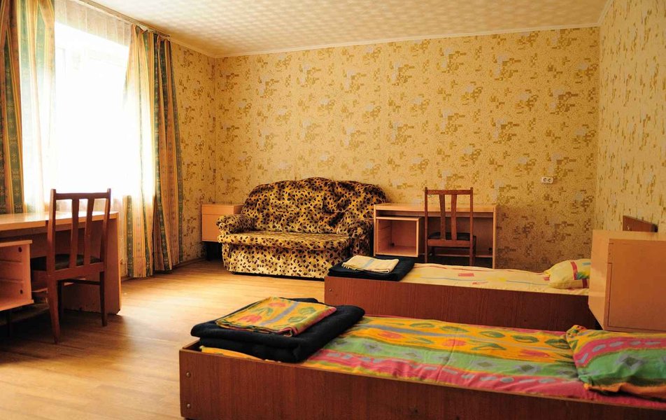 В номере:  вешалка, кровати односпальные, прикроватные тумбочки, телевизор, электрочайник