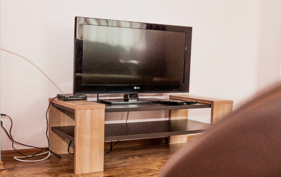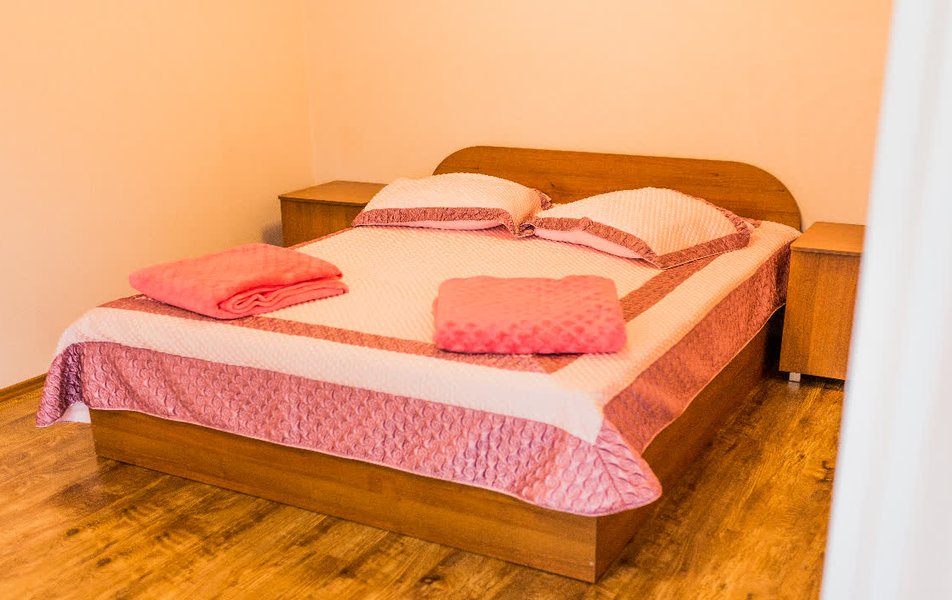 В номере: вешалка, диван раскладной, кровать двуспальная, прикроватные тумбочки, кондиционер, телевизор, холодильник, электрочайник