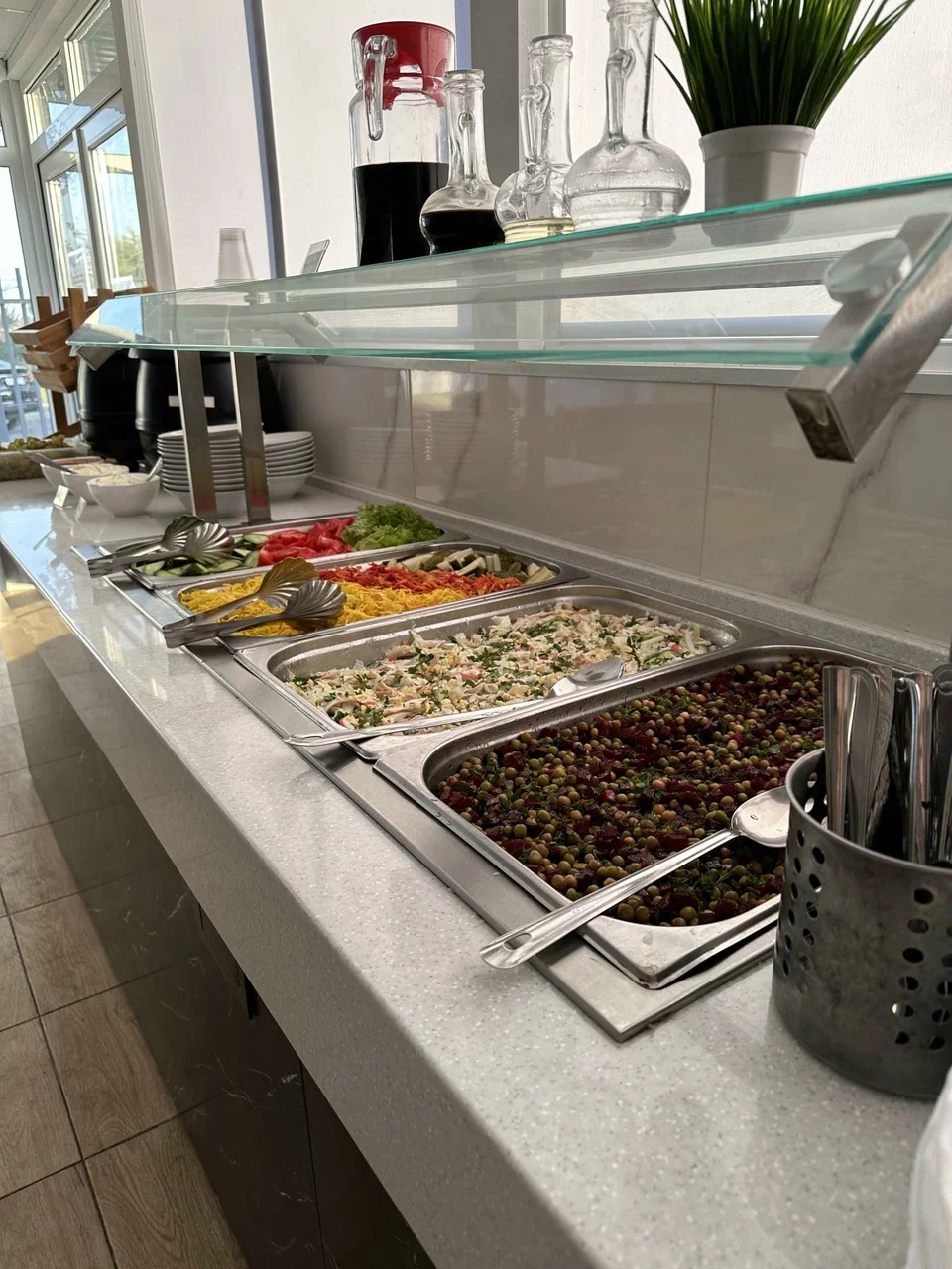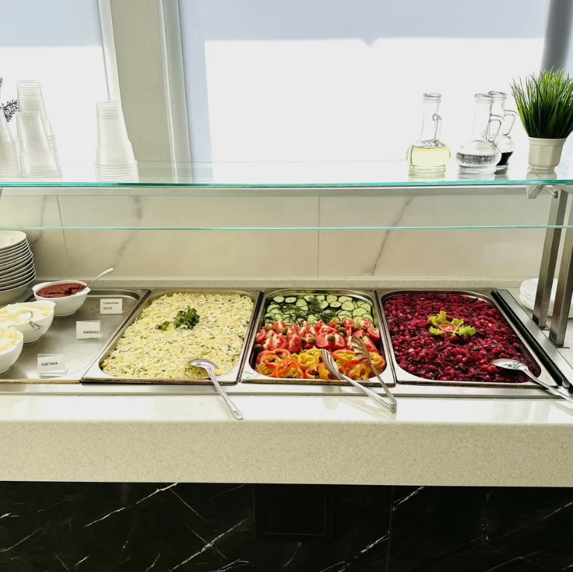 Трёхразовое питание по системе «шведский стол» — завтрак, обед и ужин с разнообразным выбором блюд для полноценного отдыха.