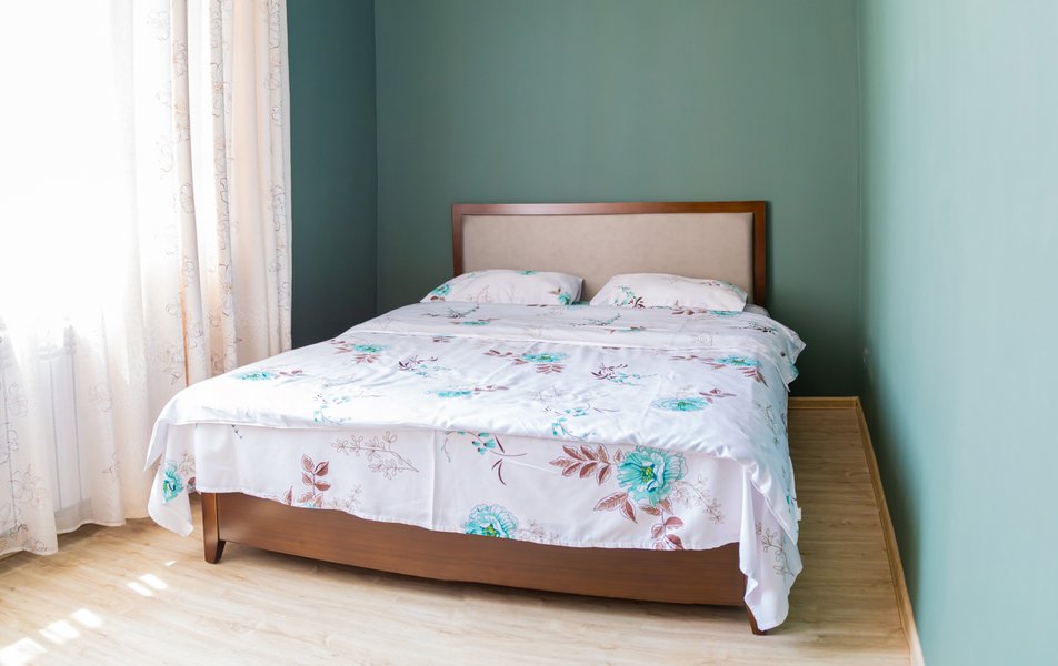 В номере: кровать двуспальная, кухонная мебель, стол, стулья, шкаф, кондиционер, микроволновая печь, набор посуды, телевизор, холодильник, электрочайник
