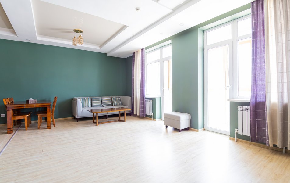 В номере: диван, кровать двуспальная, кухонная мебель, стол, стулья, шкаф, кондиционер, микроволновая печь, набор посуды, телевизор, холодильник, электрочайник