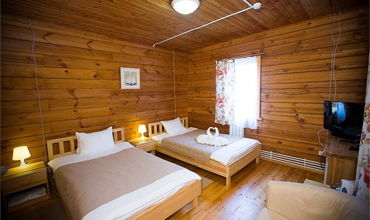 В номере: кровати полутороспальные, прикроватные тумбочки, стол, стул, шкаф, кондиционер, телевизор ЖК, телефон, холодильник, чайный набор посуды, электрочайник