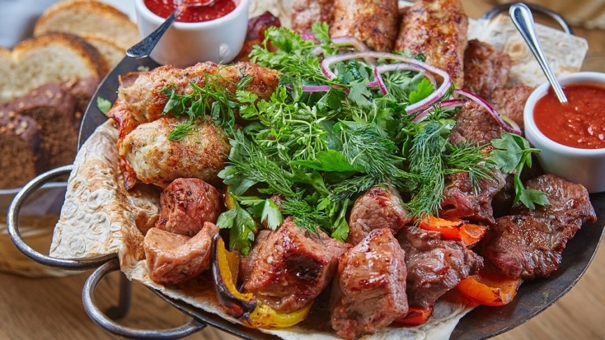 В столовой санатория "Долина Нарзанов" в Нальчике предлагается 3-х разовое питание по индивидуальному меню для отдыхающих. Основа рациона составляет классическая кухня с добавлением кабардино-балкарских элементов. Меню включает в себя широкий выбор блюд, таких как традиционные кавказские и русские угощения, разнообразные макаронные изделия, мясо, рыбу, свежие овощи, фрукты, ягоды, молочные продукты, крупы, злаки, хлопья, мюсли и вегетарианские блюда. При необходимости меню может быть составлено квалифицированным врачом-диетологом с учетом индивидуальных особенностей организма гостя.