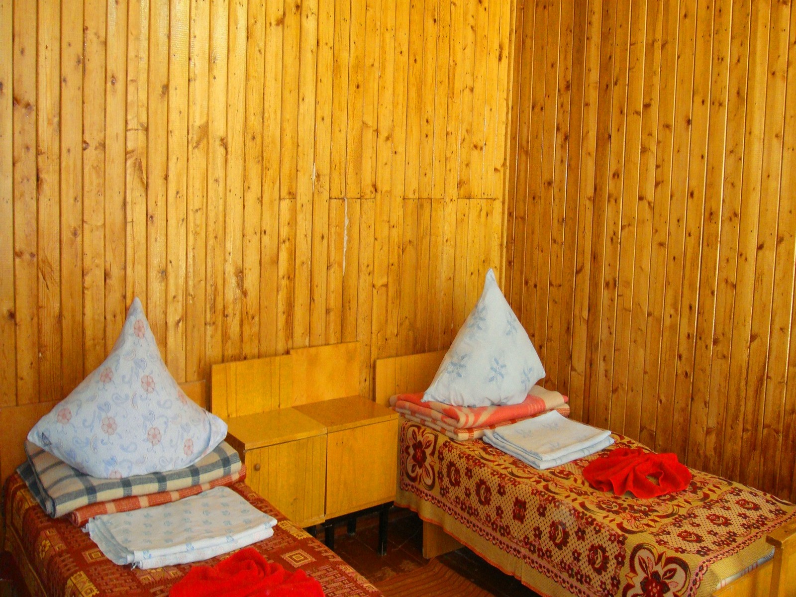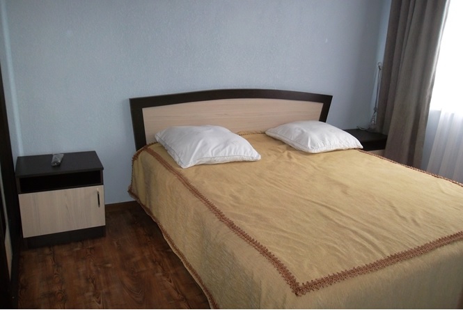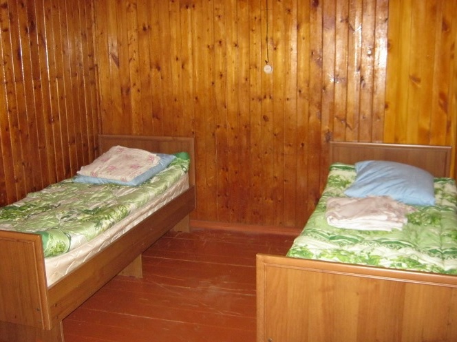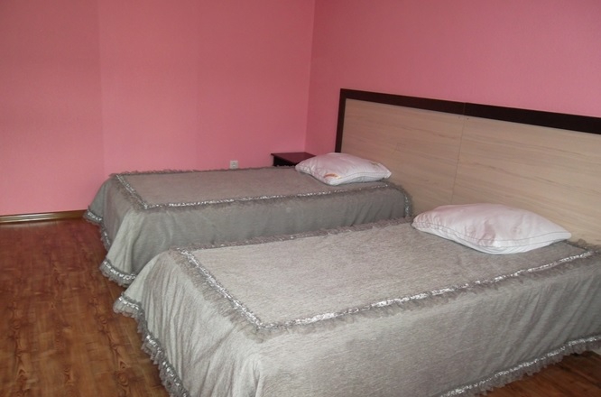 В номере: кровать односпальная: (две), прикроватные тумбочки, стол, стулья, шкаф, набор посуды