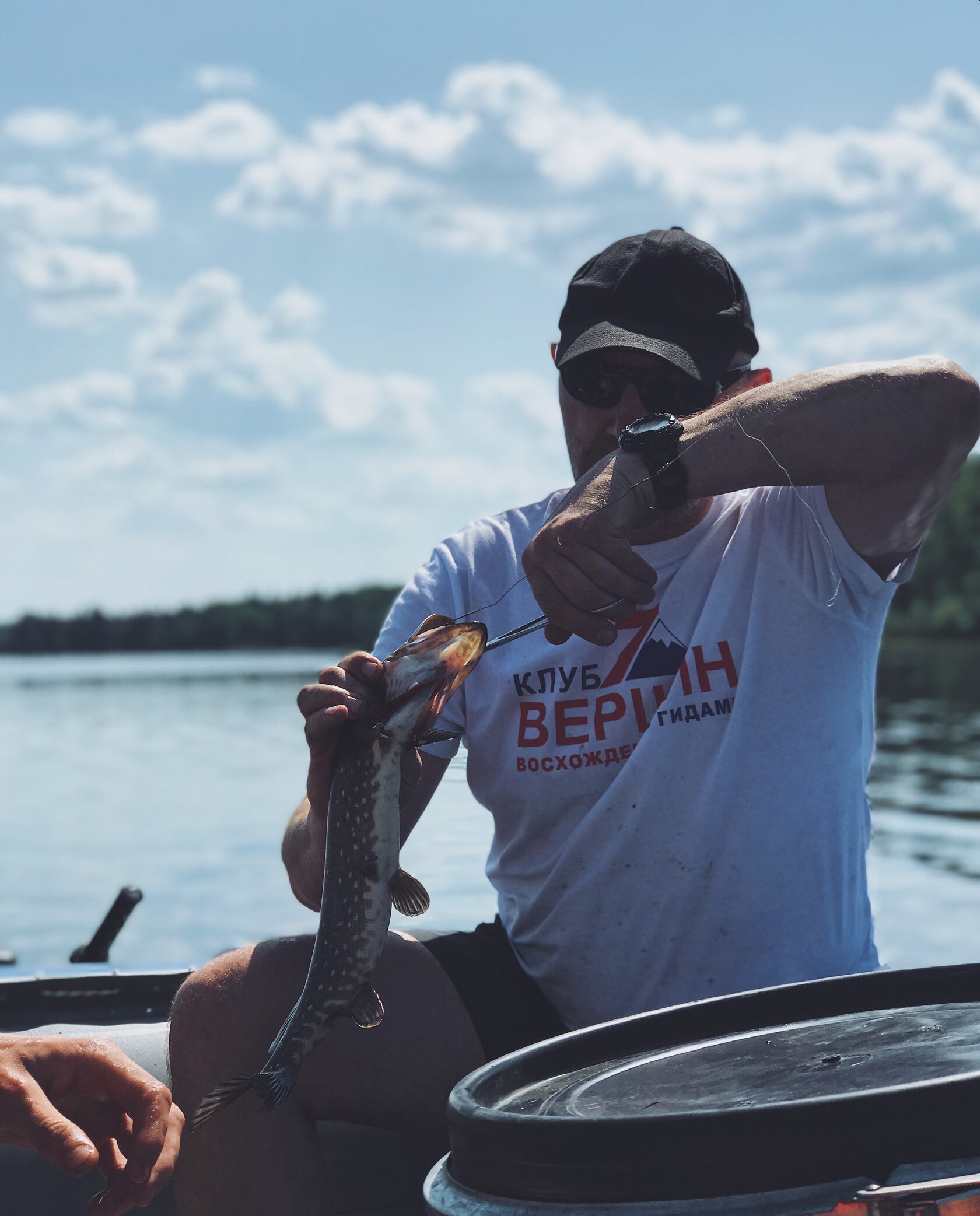 В середине маршрута запланирован пикник на берегу реки. Горячий обед готовим на костре. Во время стоянки можно порыбачить и собирать ягоды / грибы.
