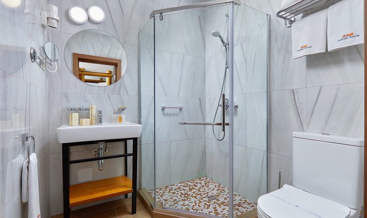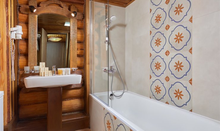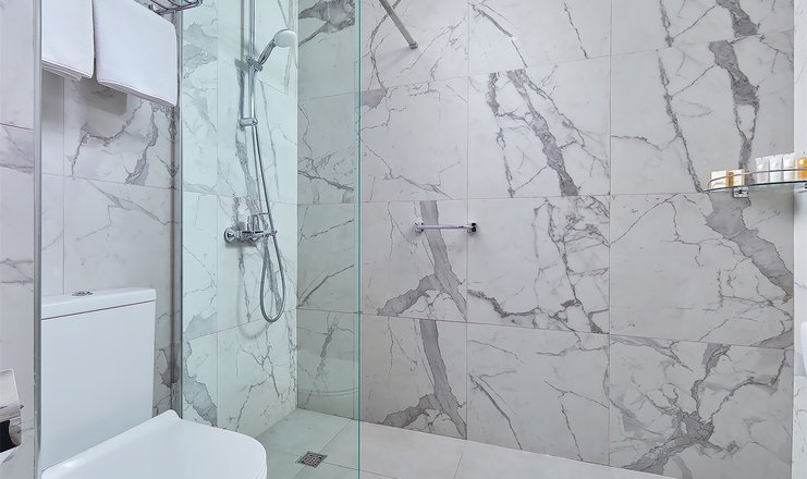 Санузел: с джакузи, с душевой кабиной, туалетные принадлежности, фен