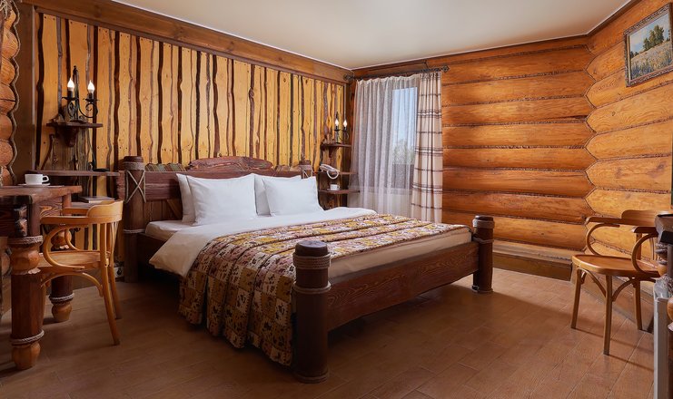 В номере: вешалка, зеркало, кровать двуспальная, прикроватные тумбочки, стол, стулья, шкаф, кондиционер, телевизор, телефон, холодильник