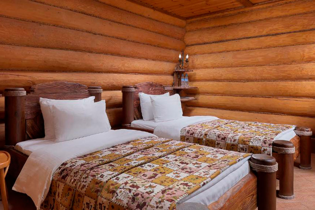 В номере: вешалка, зеркало, кровати односпальные, прикроватные тумбочки, стол, стулья, шкаф, кондиционер, телевизор, телефон, холодильник