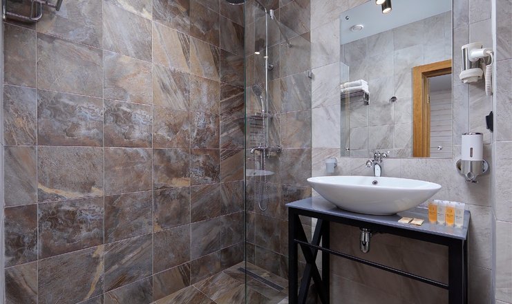 Санузел: с душевой кабиной, туалетные принадлежности, фен