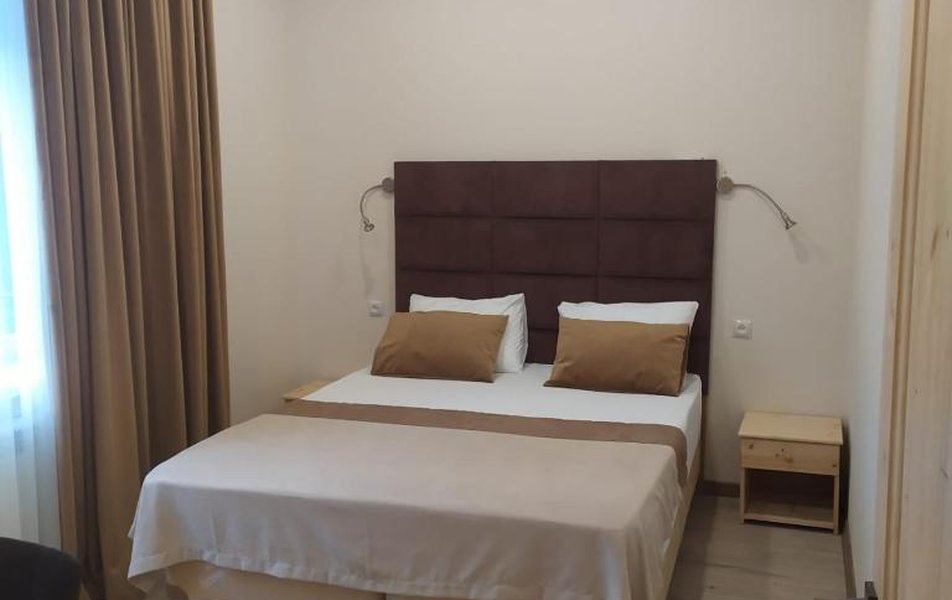 В номере: вешалка, диван раскладной, зеркало, кровати односпальные /одна двуспальная кровать, прикроватные тумбочки, стол, стул, шкаф, мини-холодильник, набор посуды, телевизор, электрочайник