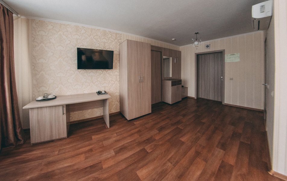В номере: вешалка, диван, зеркало, кровати односпальные /одна двуспальная кровать, прикроватные тумбочки, стол, стул, шкаф, кондиционер, мини-холодильник, телевизор ЖК, телефон, чайный набор посуды, электрочайник