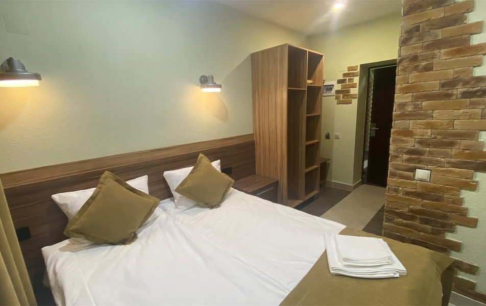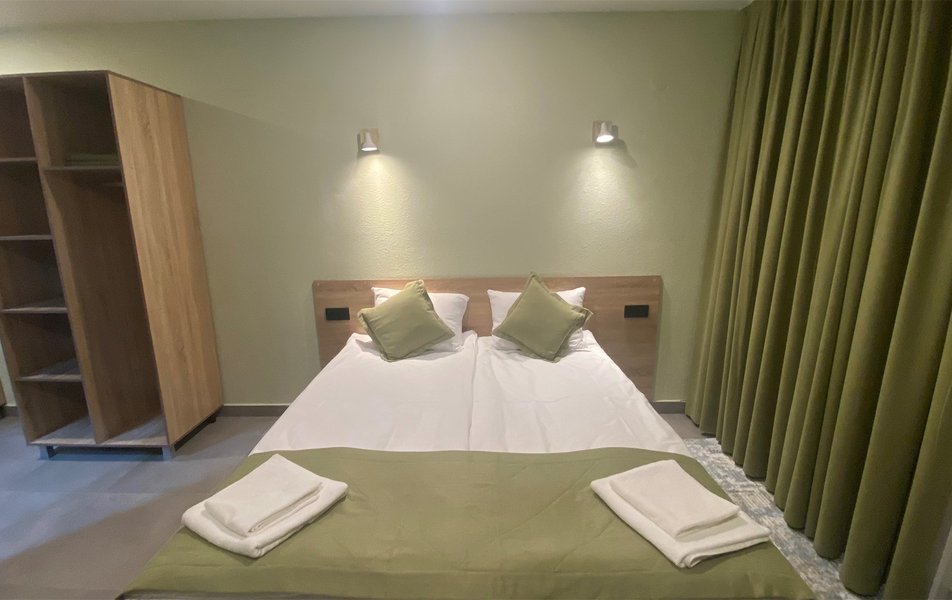 В номере: вешалка, кресло-кровать, зеркало, кровати односпальные /одна двуспальная кровать, прикроватные тумбочки, стол, стулья, шкаф, мини-кухня, кондиционер, набор посуды, сплит-система