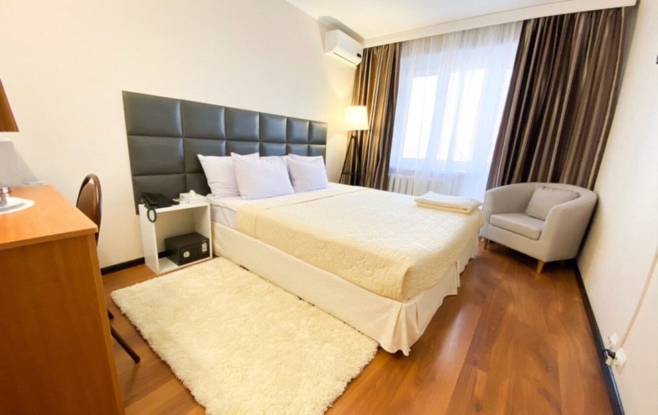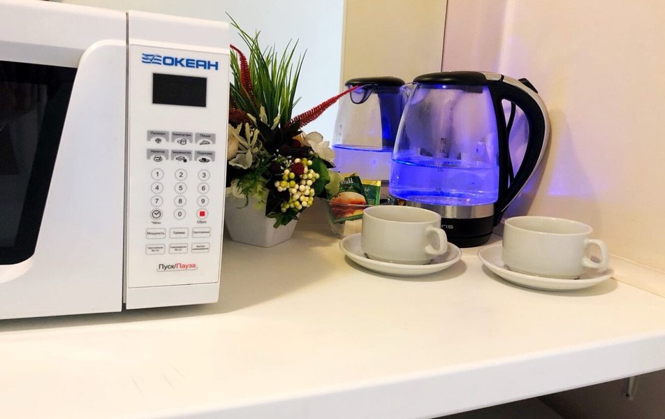 В номере: кровати односпальные /одна двуспальная кровать, прикроватные тумбочки, стол, стул, шкаф, кондиционер, микроволновая печь, телевизор, телефон, холодильник, чайный набор посуды, электрочайник
