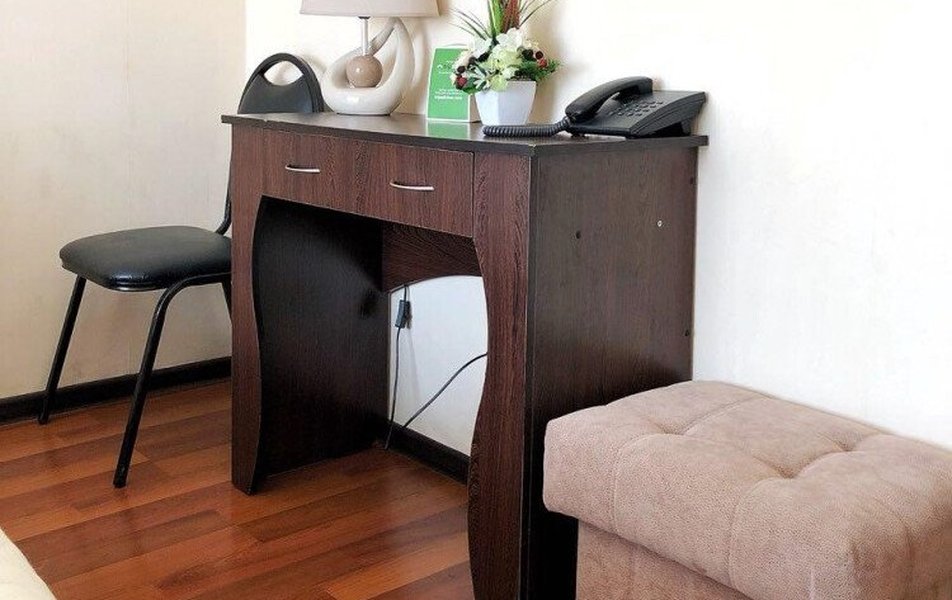 В номере: кровати односпальные /одна двуспальная кровать, прикроватные тумбочки, стол, стул, шкаф, телевизор, телефон, чайный набор посуды, электрочайник
