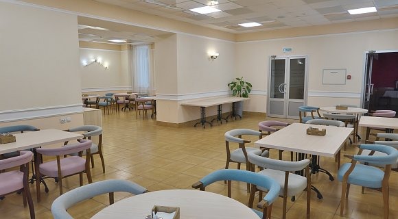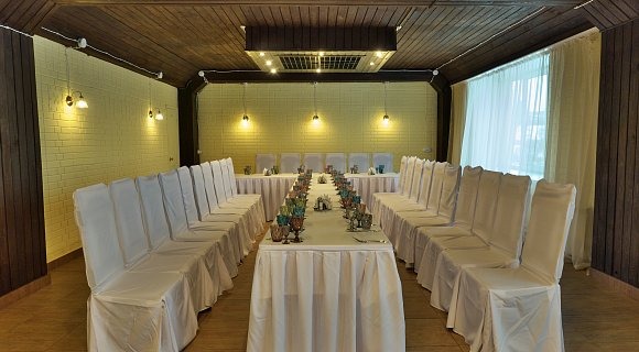 Современный светлый зал, выполненный в западноевропейским стиле. Прекрасное предложение для проведения небольших обедов и ужинов.
