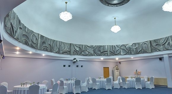 Этот светлый просторный зал с ручной росписью идеально подойдет для проведения свадебного торжества, дня рождения или юбилея