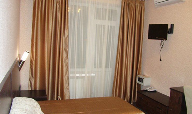 В номере: кровать односпальная, прикроватная тумбочка, стол, стул, кресло-кровать, шкаф-купе, кондиционер, мини-холодильник, набор посуды, сейф, телевизор, чайный набор посуды, электрочайник