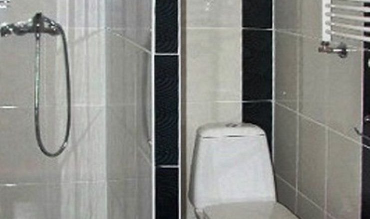 Санузел: душ, раковина, унитаз, туалетные принадлежности, фен