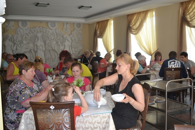 В санатории «Им. К.П. Орловского» организовано 5-разовое питание по заказному меню с элементами «шведского стола» (ежедневный отпуск салатов и овощей), работает буфет. Столовая санатория состоит из обеденного зала на 100 мест и банкетного зала на 10 мест. На столах у отдыхающих вкусные первые и вторые блюда, всегда свежие овощи и фрукты, натуральные соки, в меню много белорусских национальных блюд, широко используются овощи и фрукты, морепродукты морская рыба, соки, молочные продукты и др.