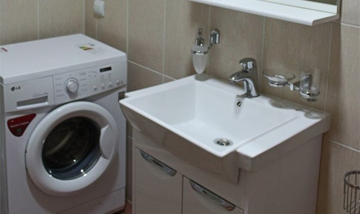 В номере: кровать двуспальная, кухонная мебель, прикроватные тумбочки, стол, столик журнальный, диван, стулья, шкаф, гладильная доска, кондиционер, микроволновая печь, набор посуды, стиральная машина, сушилка для белья, телевизор, утюг, холодильник, электрочайник