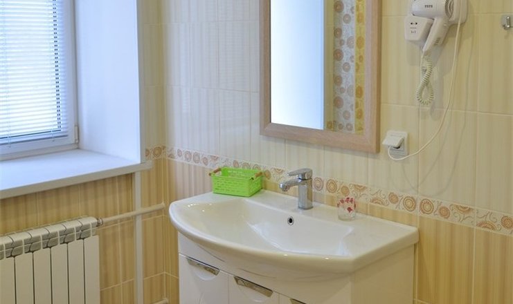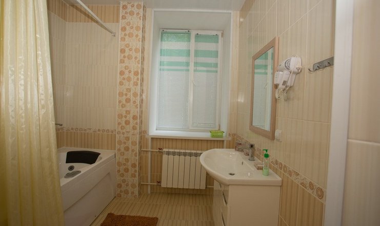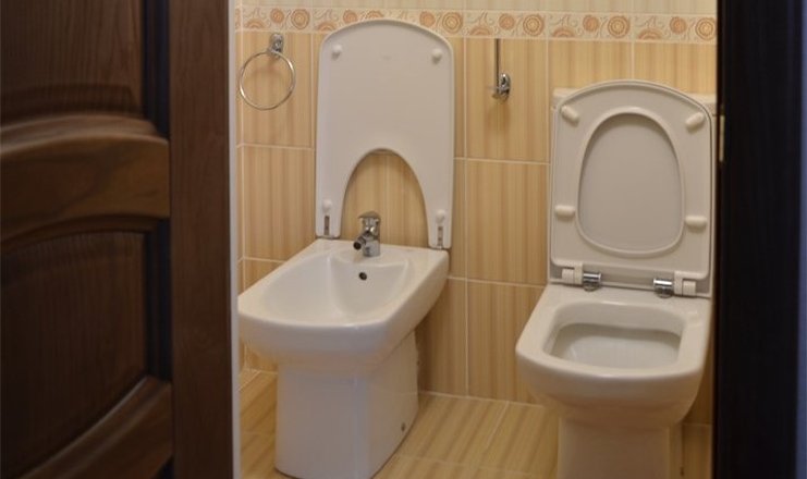 Санузел: ванна, раковина, унитаз, биде, тапочки, туалетные принадлежности, фен