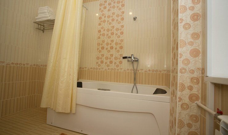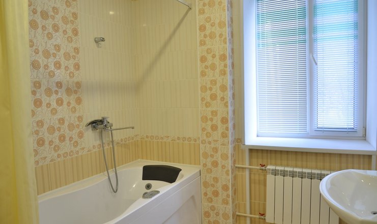 Санузел: ванна или душ, раковина, унитаз, тапочки, туалетные принадлежности, фен