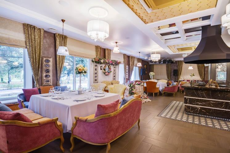В отеле имеется роскошный ресторан "MYA" в викторианском стиле, c настоящим камином в центре зала, с просторной вернадой в стиле "Прованс". Ресторан принимает заказы на проведение свадеб и других торжеств. Банкеты можно провести также и в шатре, расположенном на территории отеля на поляне у рощи. Ресторан вмещает до 100 человек, веранда до 50 человек, шатёр до 160 человек.