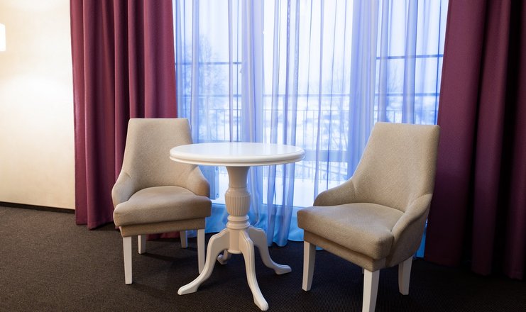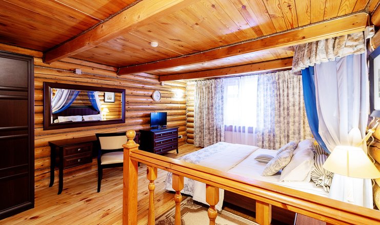 В номере: кровать двуспальная, набор мягкой мебели, прикроватные тумбочки, стол, столик туалетный, шкаф, мини-кухня, гладильная доска, камин, кондиционер, мини-холодильник, набор посуды, телевизор ЖК, холодильник, электрочайник