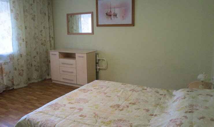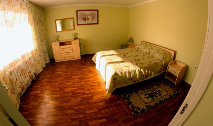 В номере: зеркало, кровать полутороспальная, прикроватная тумбочка, стол, стулья, шкаф, мини-холодильник, телевизор, чайный набор посуды, электрочайник