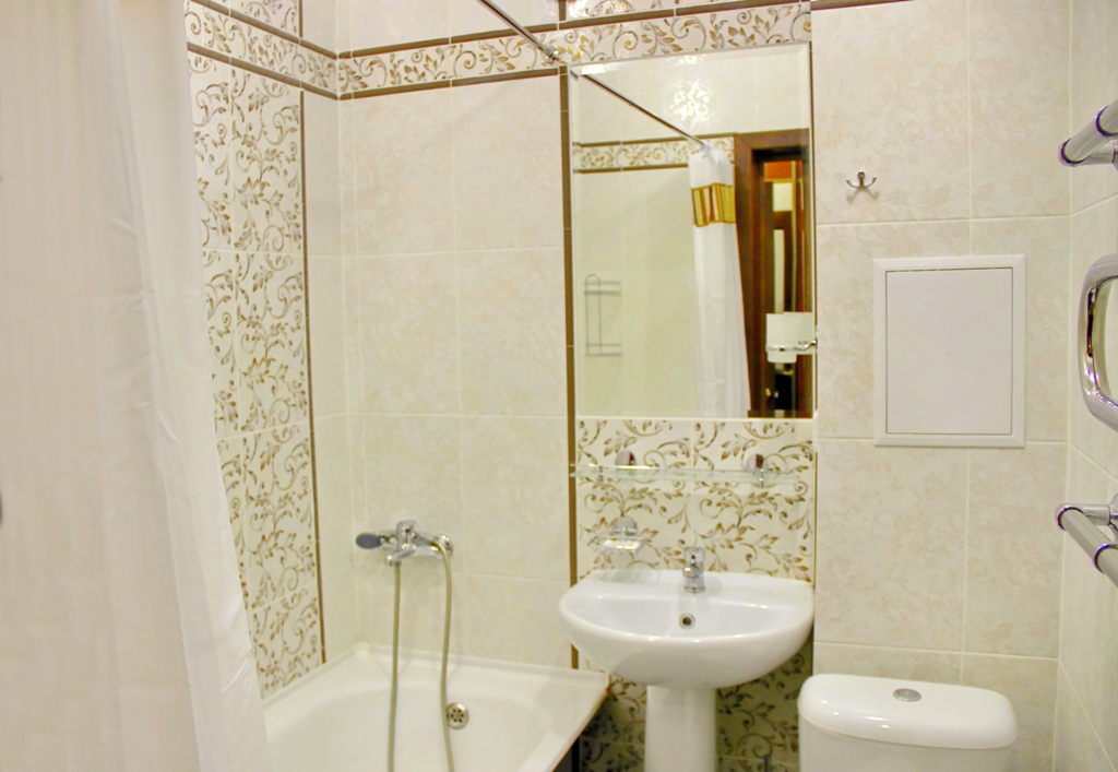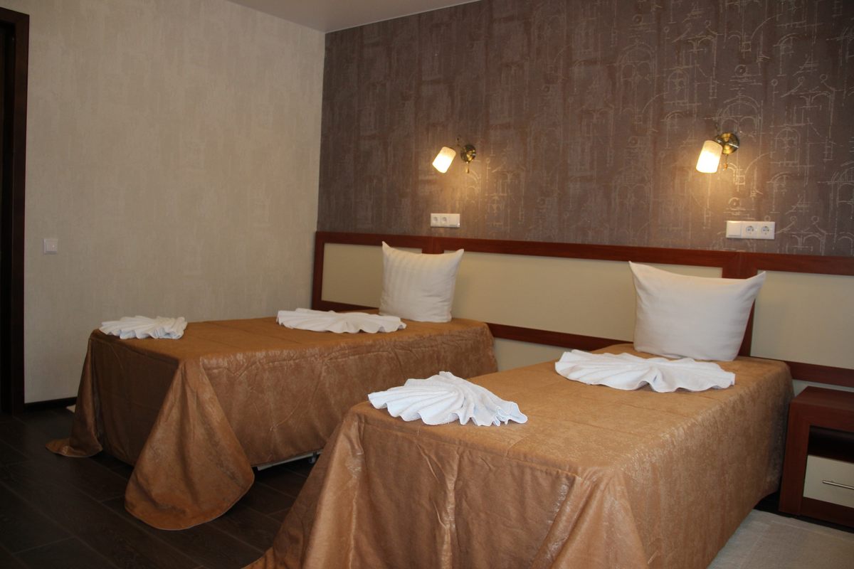 В номере: двуспальная кровать, прикроватные тумбы, стол, стулья, шкаф, тахта, телевизор, холодильник, электрочайник, утюг с гладильной доской, сушилка для белья, набор посуды
