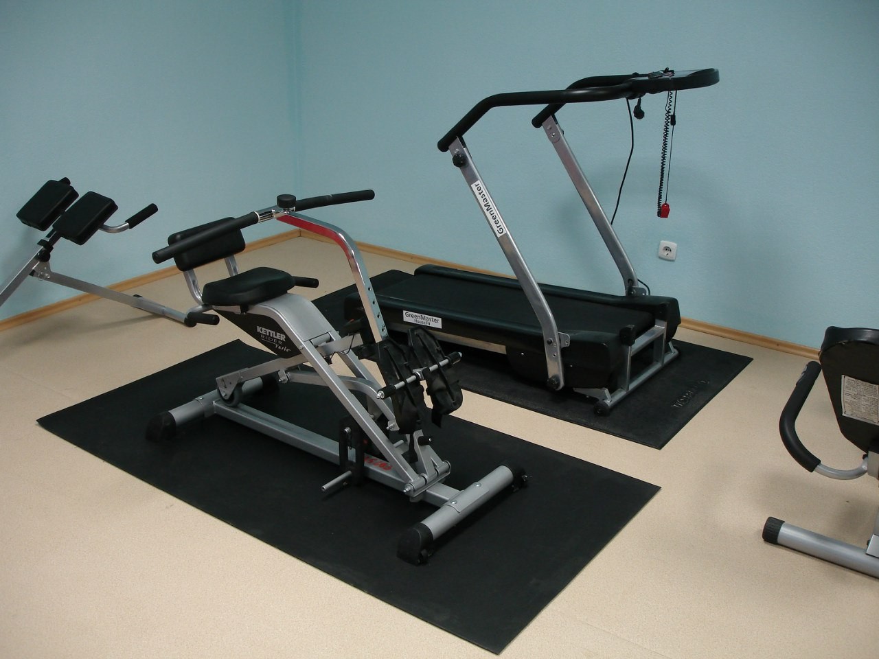 В санатории – профилактории к услугам гостей предоставлен тренажерный зал, оборудованный профессиональными тренажерами - это велотренажер, беговая дорожка, "гребля", массажный вибро-тренажер (антицеллюлитный эфеект, улучшает перистальтику кишечника, способствует снижению веса и др.), силовые тренажеры и мн.др.