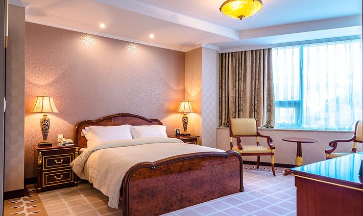 В номере: вешалка, зеркало, кровать двуспальная, прикроватные тумбочки, стол, стулья, шкаф, Мини-кухня, мини-холодильник, сейф, сплит-система, телевизор, телефон, чайный набор посуды, электрочайник