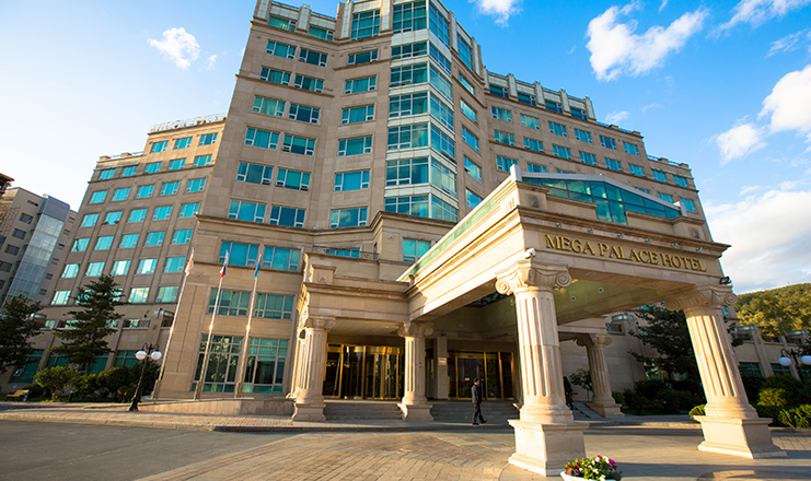 Отель «Мега Палас» - это высотное здание, находящееся в паре шагах от городского парка и горнолыжного курорта «Горный Воздух» в Южно-Сахалинске. Он открыл свои двери 6 мая 2006 года. «Мега Палас Отель» даже в самый разгар туристического сезона сохраняет спокойствие и невозмутимость. Он стал любимым местом для приезжающих звезд, политиков, бизнесменов.