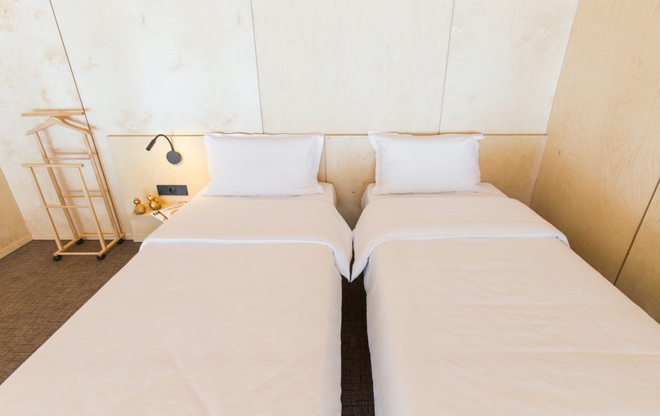 В номере: вешалка, диван раскладной, кровать двуспальная или две односпальные, прикроватные столики, столик журнальный, тумба, гладильная доска, кондиционер, мини-холодильник, набор посуды, сейф, телевизор, телефон, утюг, электрочайник