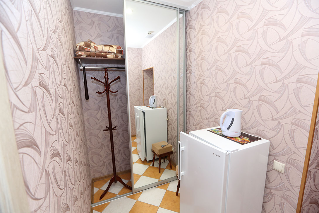 Прихожая: шкаф для одежды, утюг, гладильная доска, холодильник;
