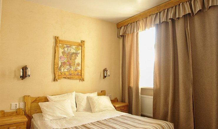 Мебель: Кровать двуспальная, тумба, стол, стул, шкаф, место на печи