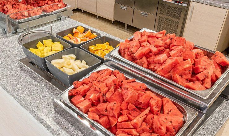 В нашем основном ресторане гости питаются по системе «Шведский стол». Меню на 7 дней включает блюда из стран Черноморского и Карибского бассейнов. Регулярно проводятся тематические ужины. Взрослое меню включает в себя салаты и закуски, супы, вторые блюда из мяса, курицы, рыбы, овощей, каши, выпечку, фрукты и овощи. Для обеда и ужина предлагаются прохладительные напитки, чай, кофе, какао, слабоалкогольные и алкогольные напитки. Есть возможность заказать стол низкокалорийного питания. Для маленьких гостей у нас есть детский зал с особым оборудованием и детское меню. Мы используем только продукты, которые не нанесут вред малышам, а подадут им энергию на весь день. Кроме того, в нашем зале можно воспользоваться стерилизатором, подогревателем для бутылочек и микроволновой печью для приготовления детского питания. |