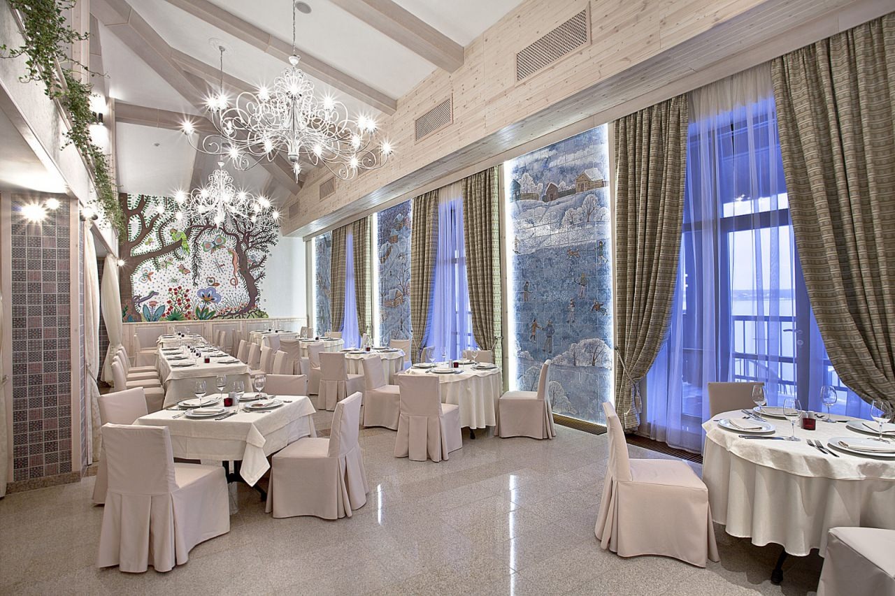 Гости могут отдохнуть в ресторане с русской и европейской кухней «Клаб Хаус», также работают летнее кафе с террасой на берегу реки и бар.