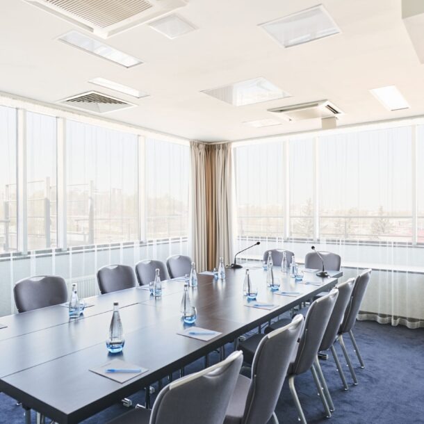 •  К услугам гостей 2 конференц-зала и 4 переговорных комнаты для проведения крупных и камерных мероприятий. Переговорные комнаты оборудованы панорамными окнами.