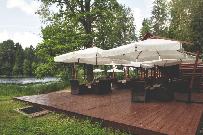 Ах, какой приходит аппетит на свежем воздухе весенними и летними вечерами! Когда перед глазами живописное озеро, а на берегу чистейший воздух леса и прибрежной зоны смешивается с ароматом готовящейся еды — шашлыка, селигерской ухи и других фирменных блюд кухни отеля... Летнее кафе предлагает большой выбор напитков, закусок, салатов и копчёную селигерскую рыбку. В сезонный период ежедневно для гостей отеля в кафе организуются зажигательная дискотека и развлекательные программы. Корпоративным клиентам и организованным группам мы предлагаем провести в летнем кафе банкет, фуршет, барбекю с развлекательной программой и уникальным меню. Вместимость: до 80 человек — в крытой части, до 20 человек — под зонтами, до 30 человек — на открытой территории (при благоприятной погоде).
