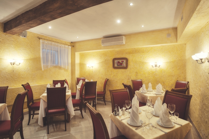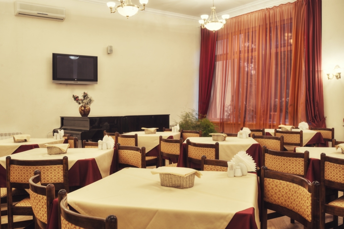 Ресторан расположен в цокольном этаже здания «Усадьбы», состоит из двух залов (40 м2 и 60 м2), оснащён кондиционерами. В уютном помещении ресторана предлагается широкий выбор блюд, закусок, напитков, кофе и элитного чая. Негромкая фоновая музыка, живая музыка и караоке дополнят ваше настроение позитивными и романтическими нотками и создадут приятную атмосферу. Помещение ресторана мы также предлагаем корпоративным клиентам в качестве переговорных комнат или небольших конференц-залов до 25 человек с удобной организацией кофе-брейков.