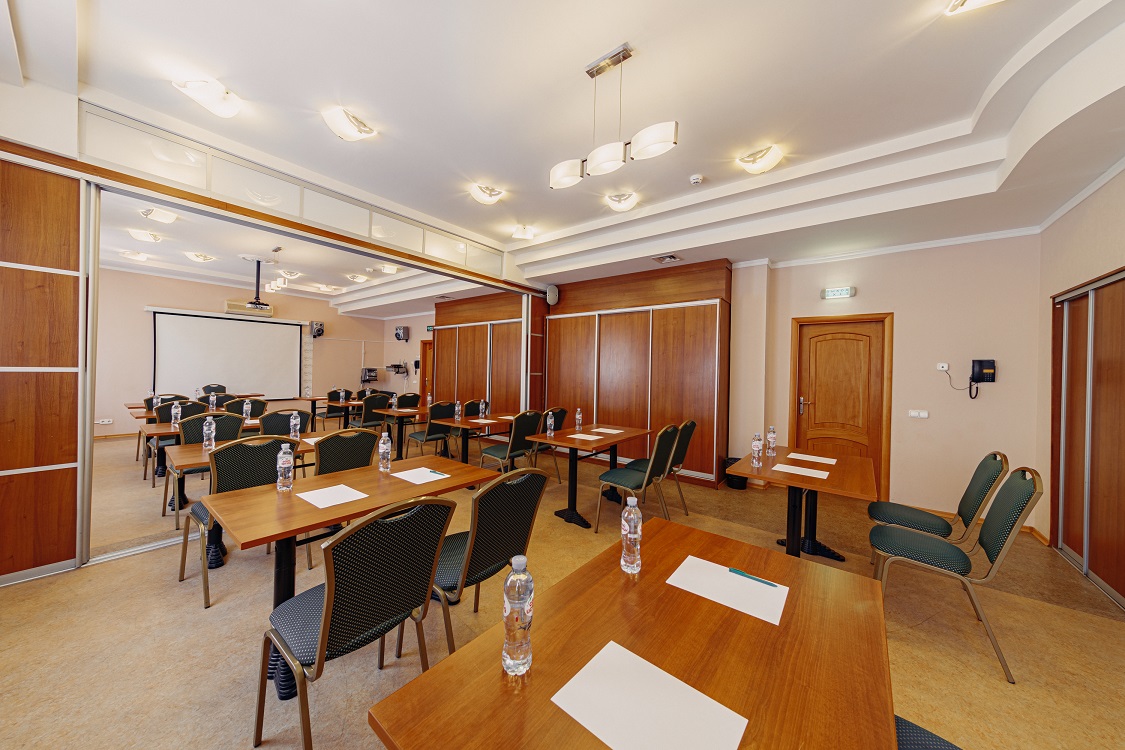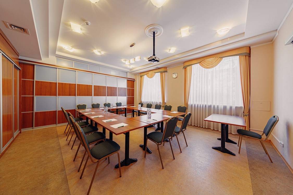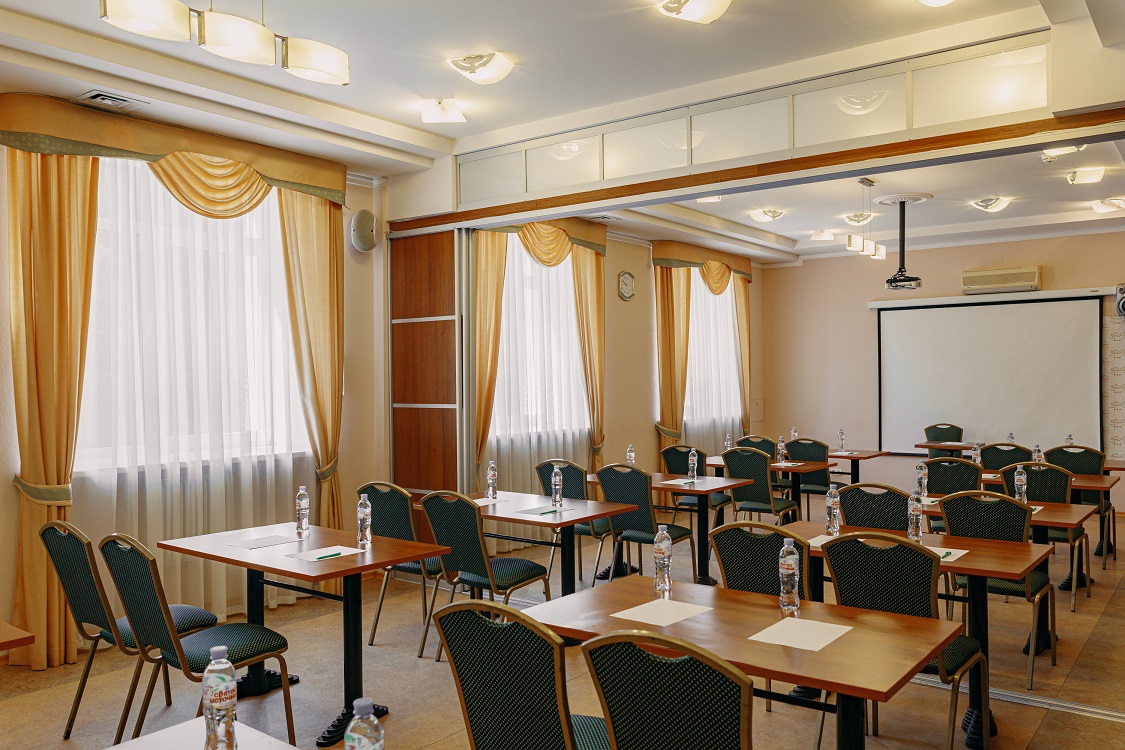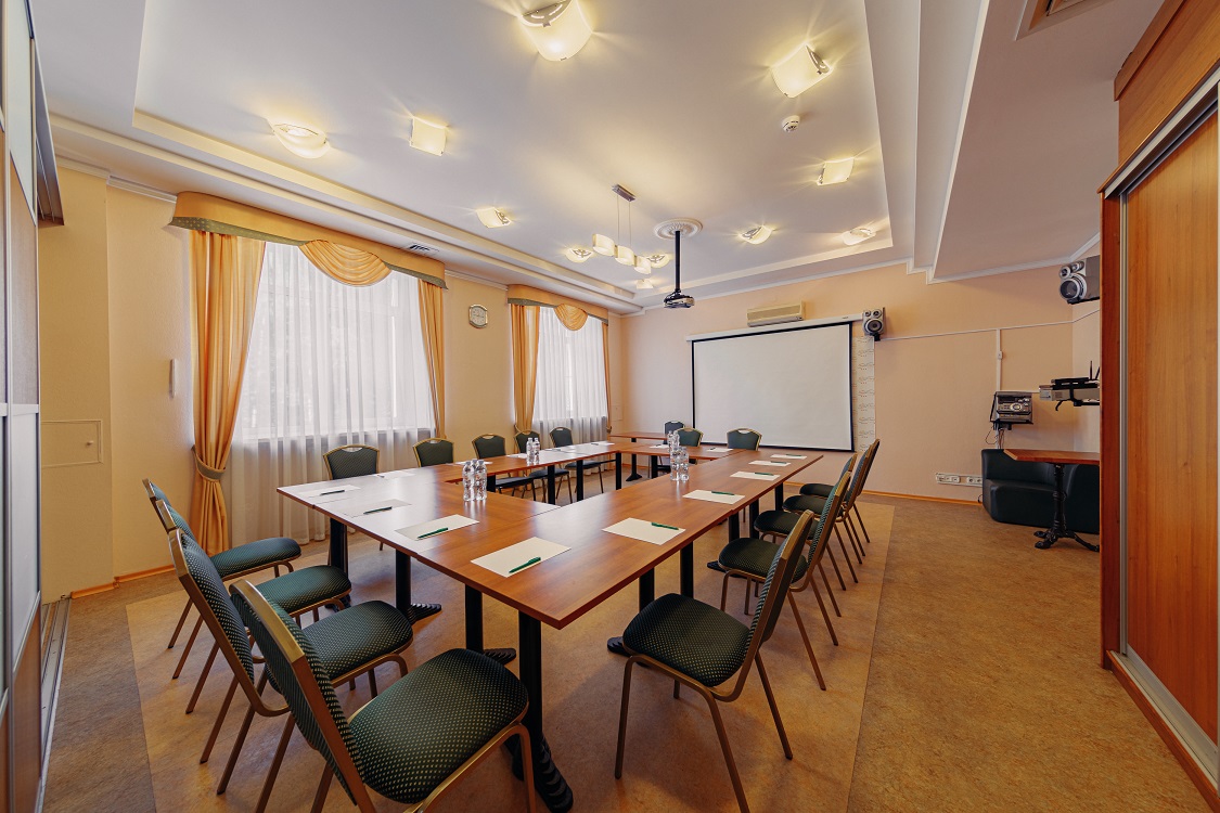 Малый конференц-зал расположен на втором этаже гостиничного комплекса «Тверь Парк Отель» и оборудован всем необходимым для проведения конференций, семинаров, презентаций, тренингов и деловых встреч. Местоположение гостиничного комплекса вдали от городского шума, в березовой роще на берегу Волги, позволяет эффективно сочетать деловое общение и отдых.