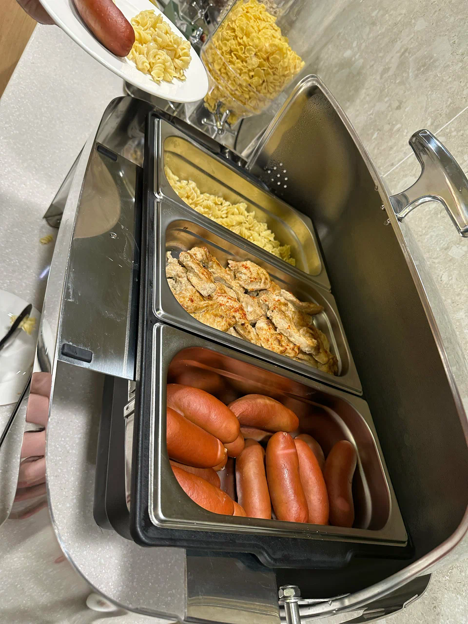 - Горячие блюда на выбор: омлеты, яичница, каши на молоке или воде