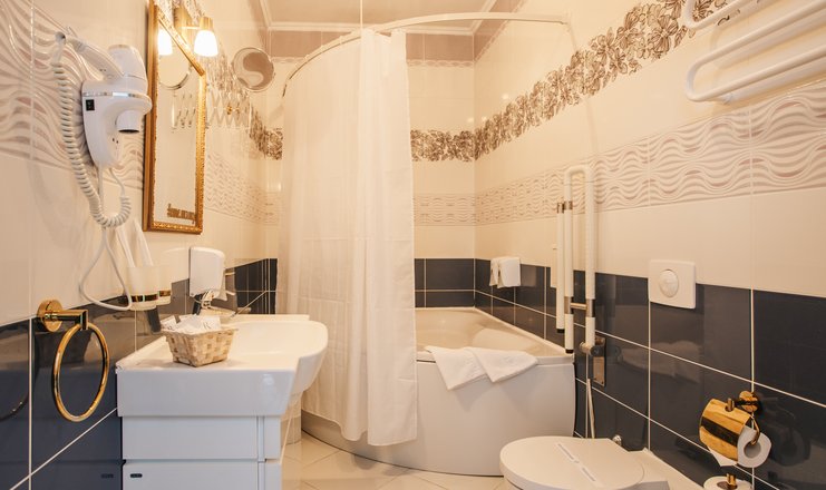Санузел: биде, с ванной, тапочки, туалетные принадлежности, фен, халат