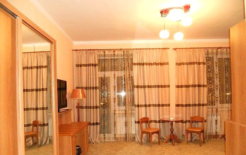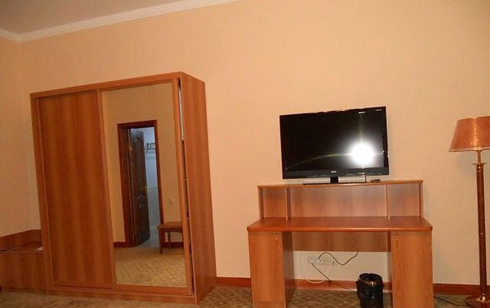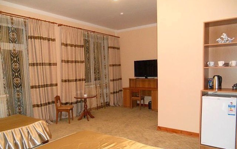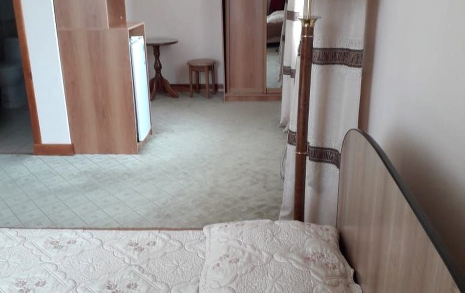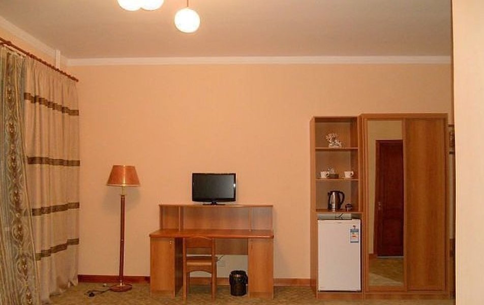 В номере: кровать двуспальная, кровать односпальная, прикроватные тумбочки, столик кофейный, шкаф, телевизор, кондиционер, телефон, холодильник, чайный набор посуды, электрочайник