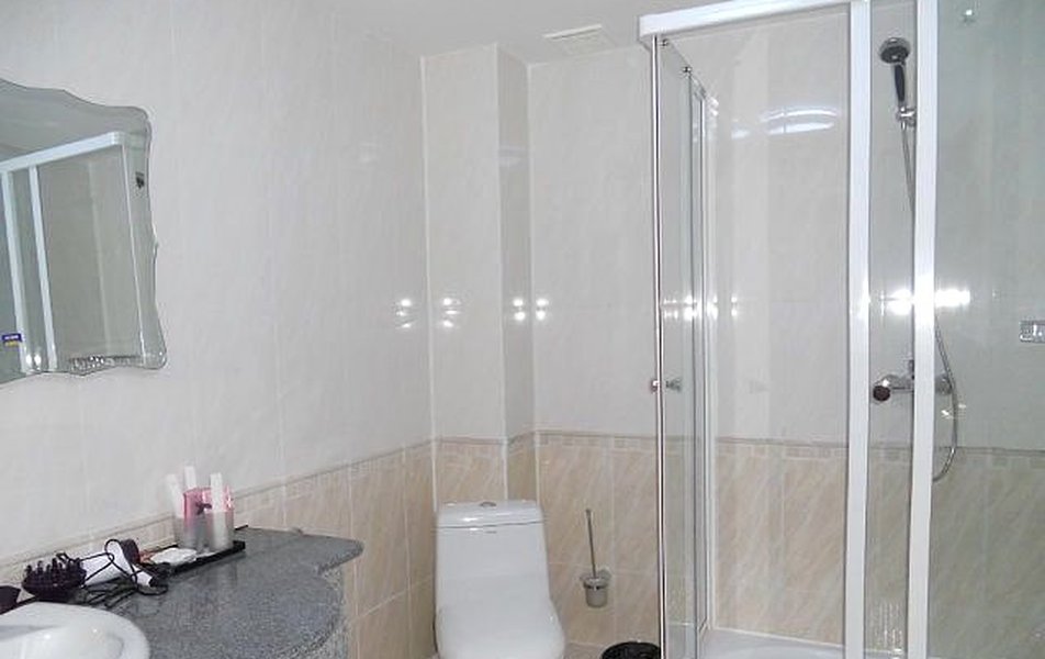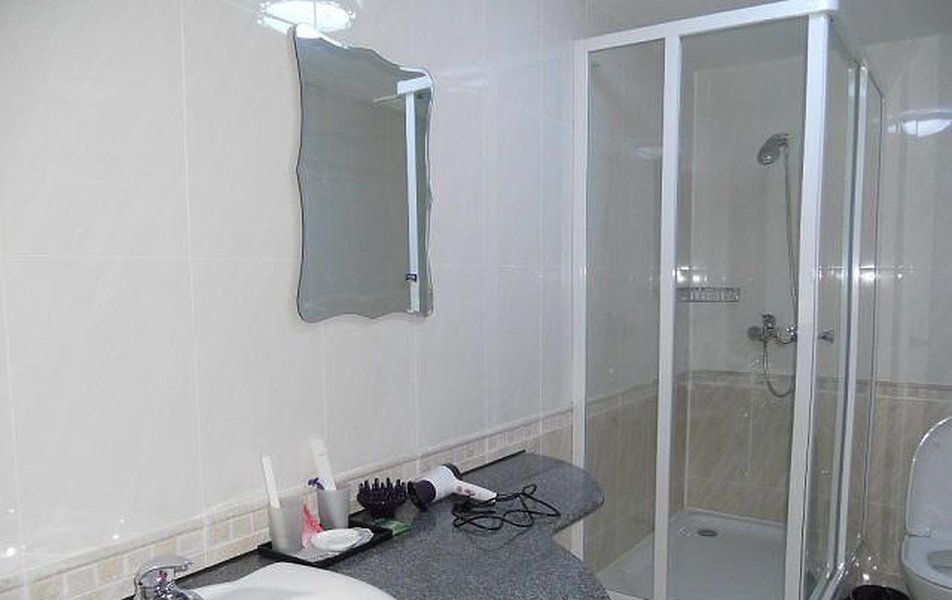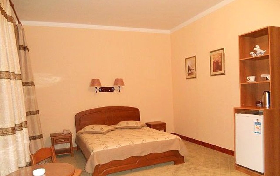 В номере: кровать двуспальная, прикроватная тумбочка, столик журнальный, шкаф, кондиционер, телевизор, телефон, холодильник, чайный набор посуды, электрочайник