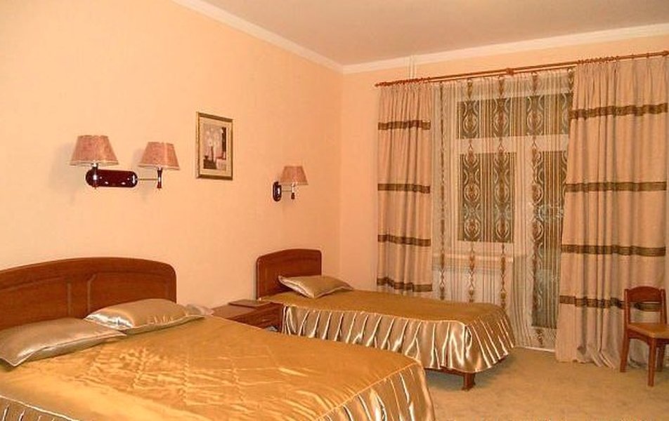 В номере: кровать двуспальная, кровать односпальная, прикроватные тумбочки, столик кофейный, шкаф, телевизор, телефон, холодильник, чайный набор посуды, электрочайник
