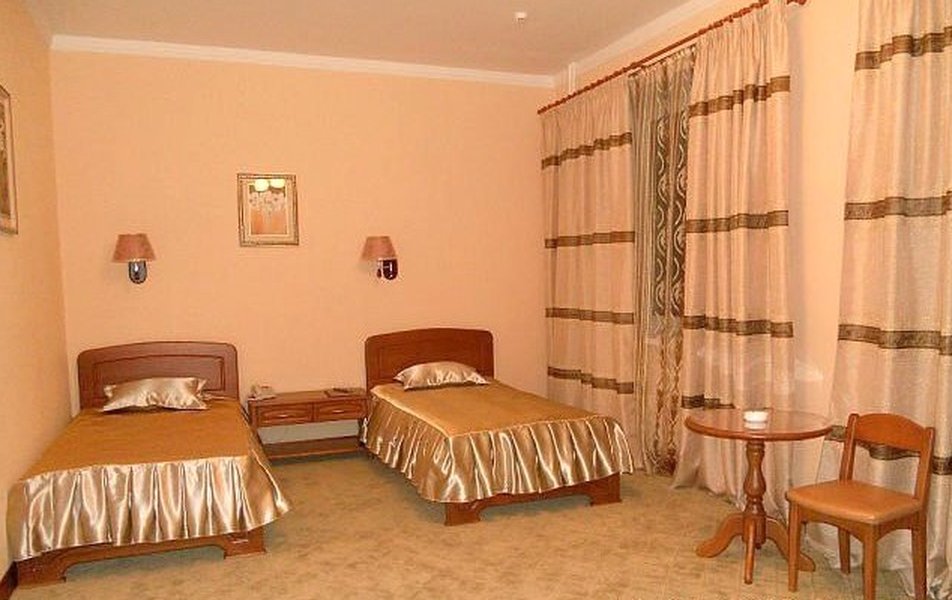 В номере: кровать односпальная, кровать односпальная, прикроватные тумбочки, столик кофейный, шкаф, телевизор, кондиционер, телефон, холодильник, чайный набор посуды, электрочайник