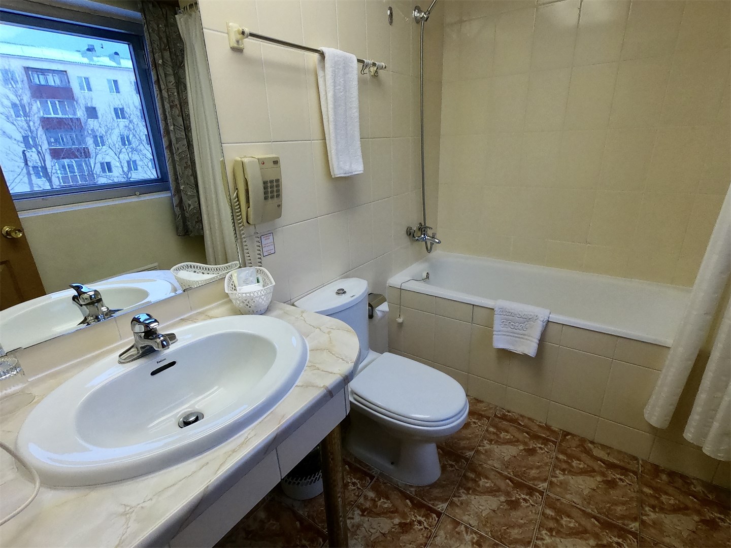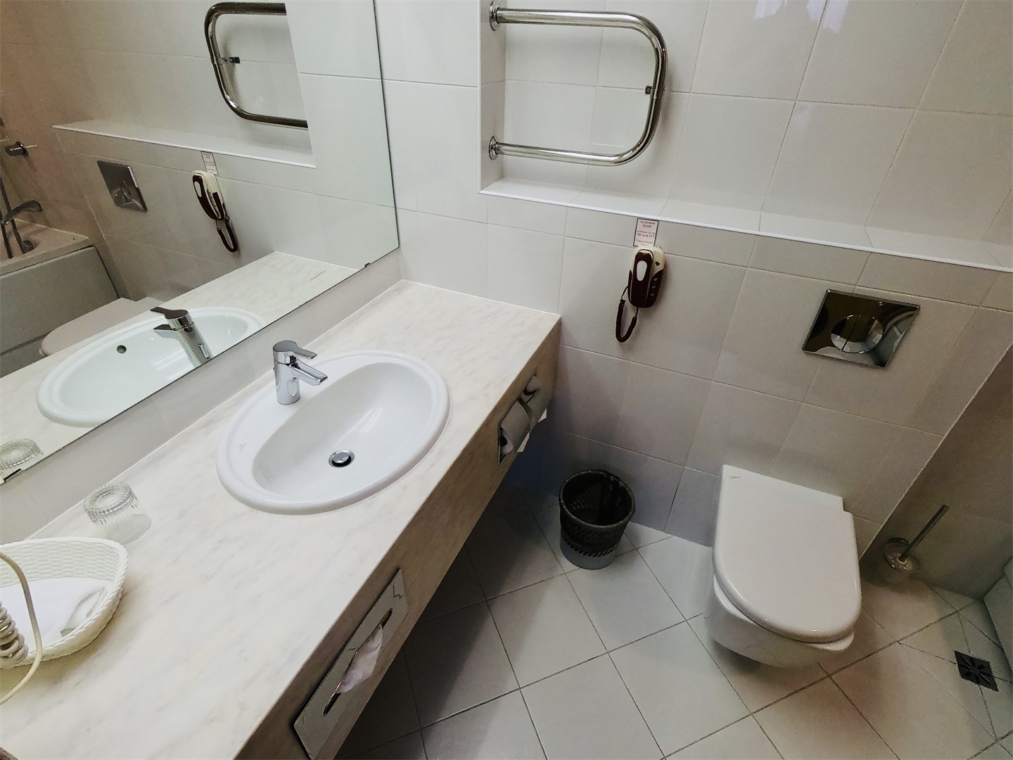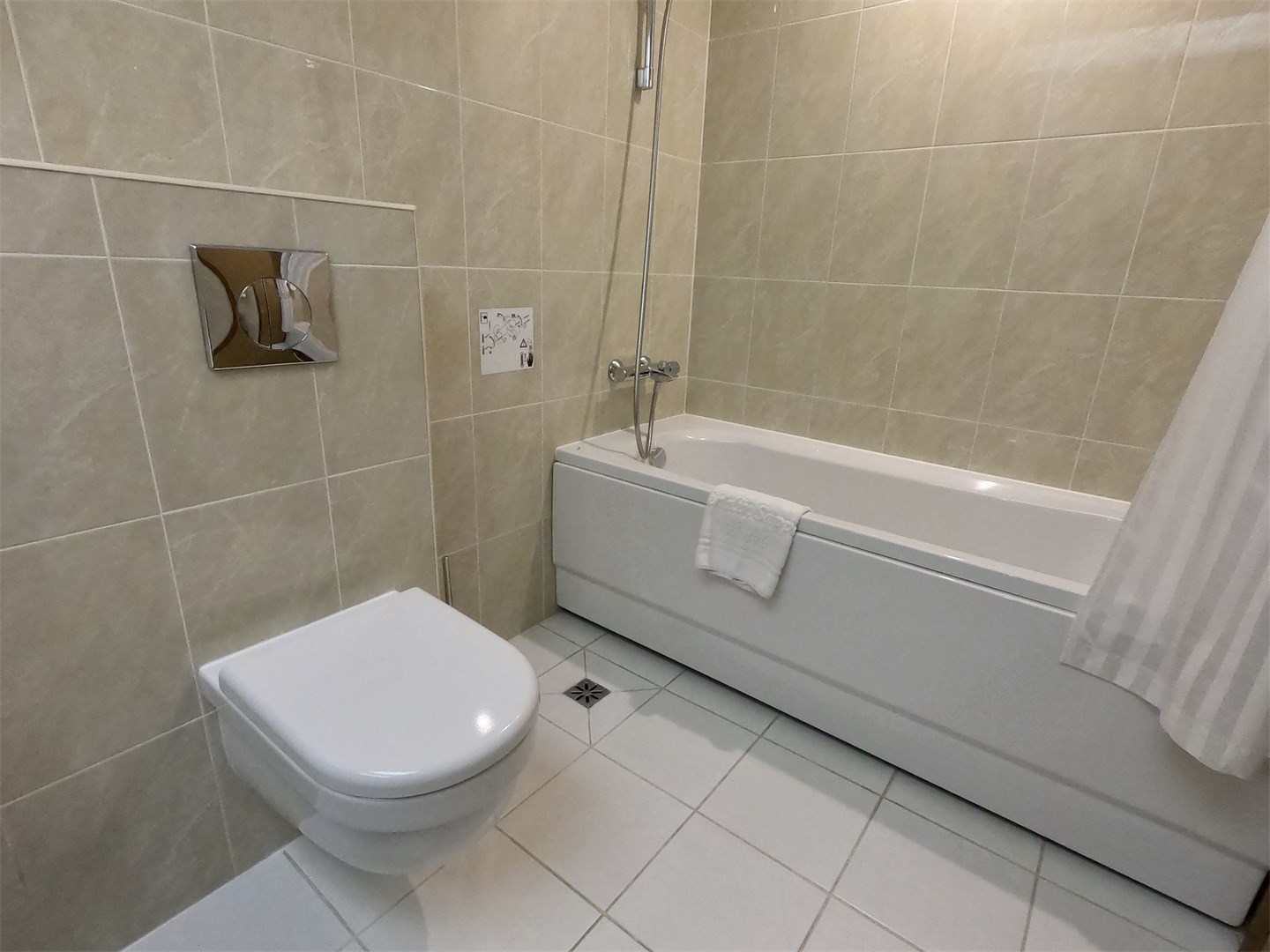 Санузел: с ванной, туалетные принадлежности, фен, халат, тапочки