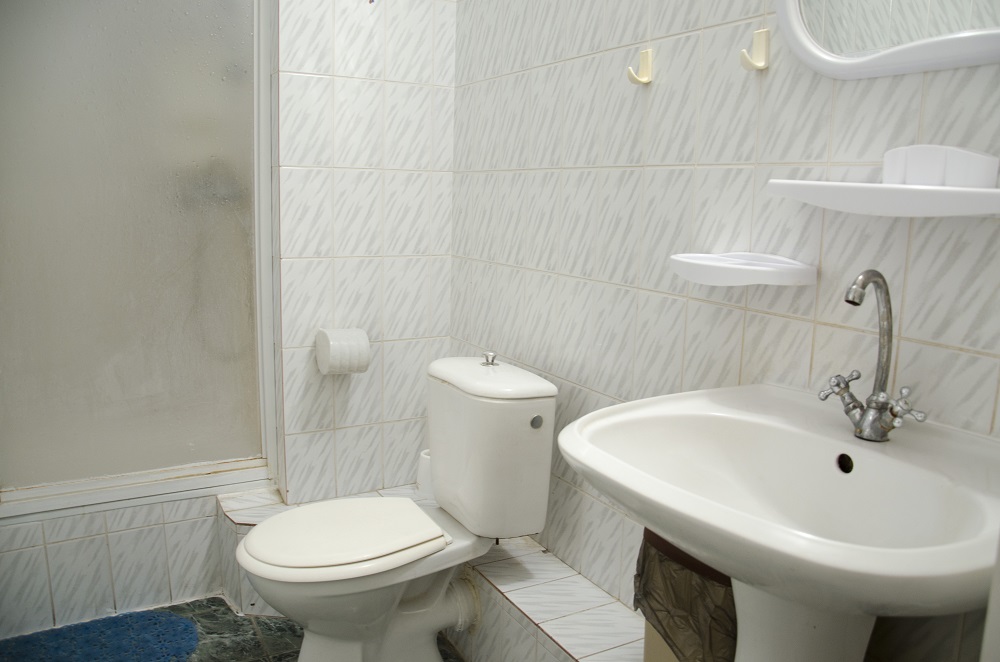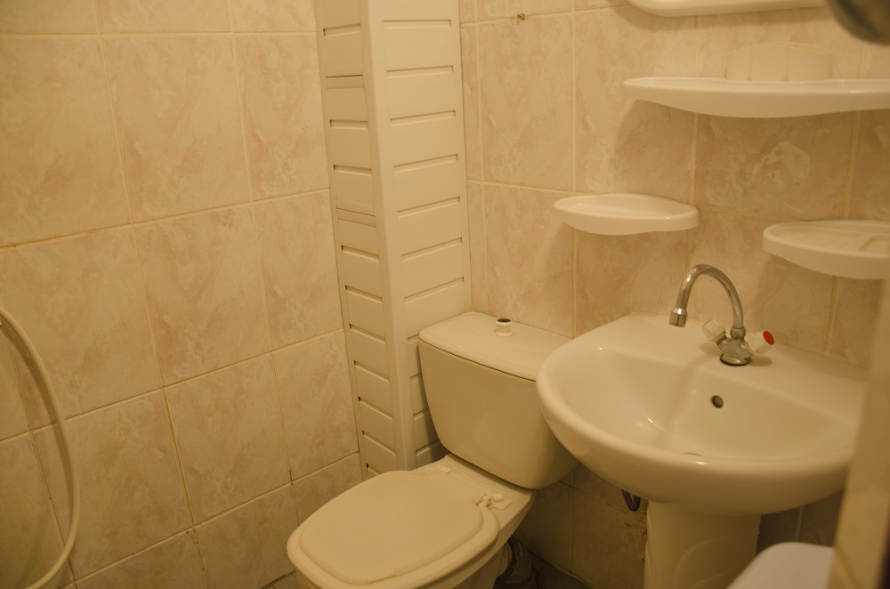 Санузел: душ, раковина, унитаз, банные полотенца, гигиенические средства